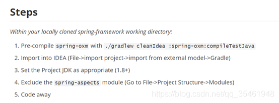 完事开头难, 需要多一点耐心去做。在导入spring-framework源码的时候,最重要的就是修改gradle.build里面引入maven引用的jar。不然各种jar包缺失的报错。不要修改默认使用的gradle版本,用默认的就好!