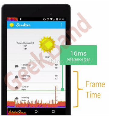 我们要保证这三种柱状图都不超过16ms的那条水平线,才能达到一个流畅的视图。