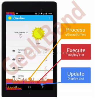 ▶ 红色:执行时间——调用OpenGL ES api,数据发送给GPU;