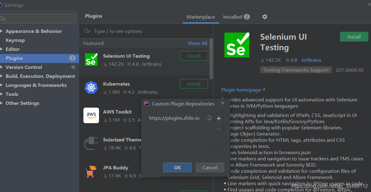 2.然后file->settings->plugins