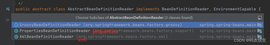 然后看对应子类,会发现该抽象类下面继承了不同的 文件对象读取器;
