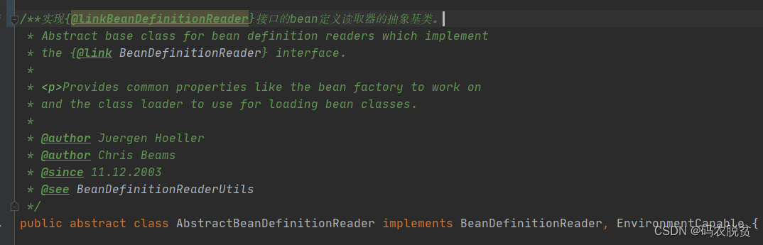 然后看父类AbstractBeanDefinitionReader是抽象的bean定义信息读取器基础类