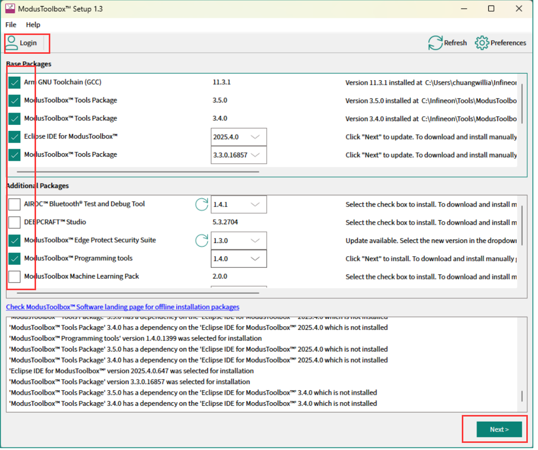 这里注意,安装这个环境是需要一个infinity的账号的,如下图所示需要点击Login登录之后才能继续安装下载,否则安装不了,我这里有单独的离线安装包,后面找几乎补一下。