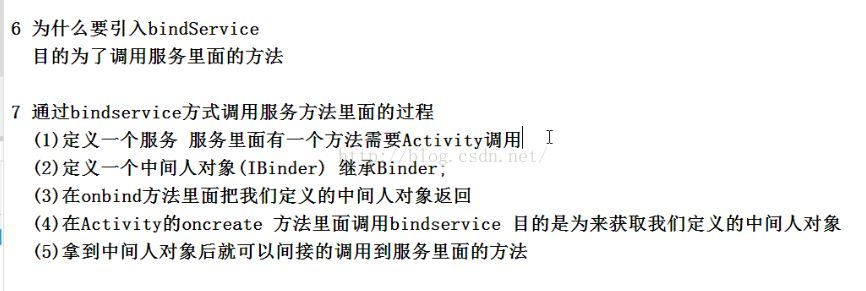 正式调用bindService方法,conn 是 SeviceConnection接口的实现类实例,此时 Activity与Service就通过Service的中间人对象建立起了二者的联系,Service里的中间人实例,此时就可以在Activity中调用Service中的中间人对象自身定义的方法了。其实也就是间接的调用了Service的方法(业务逻辑)