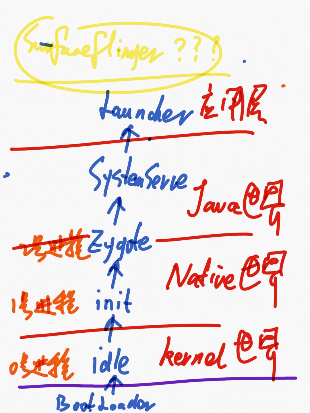 是不是感觉步骤还是挺多的?其实咱们主要做的还是只负责按电源键就OK了,咱们要分析的,就是从1-5这几步,系统都做了哪些事情,我简单画了个图(ps:这也叫图?):