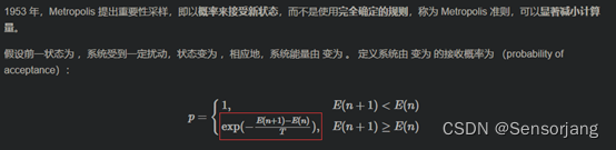 模拟退火中关于Boltzmann分布和Metropolis采样方法的应用探讨 模拟退火中关于Boltzmann分布和Metropolis采样方法的应用探讨在学习模拟退火算法时可能会遇到以上两个知识,对于他们在算法中的意义和用法,很容易让初学者难以理解,因此根据本人学习理解写下本文。