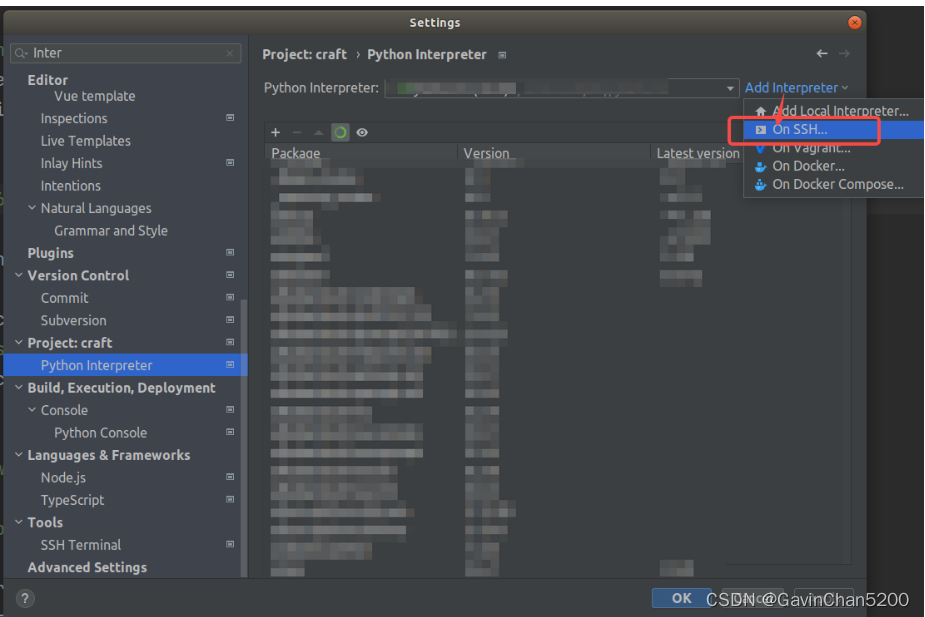 点击Add Interpreter,选择On SSH并点击 (PyCharm社区版本无该选项)。