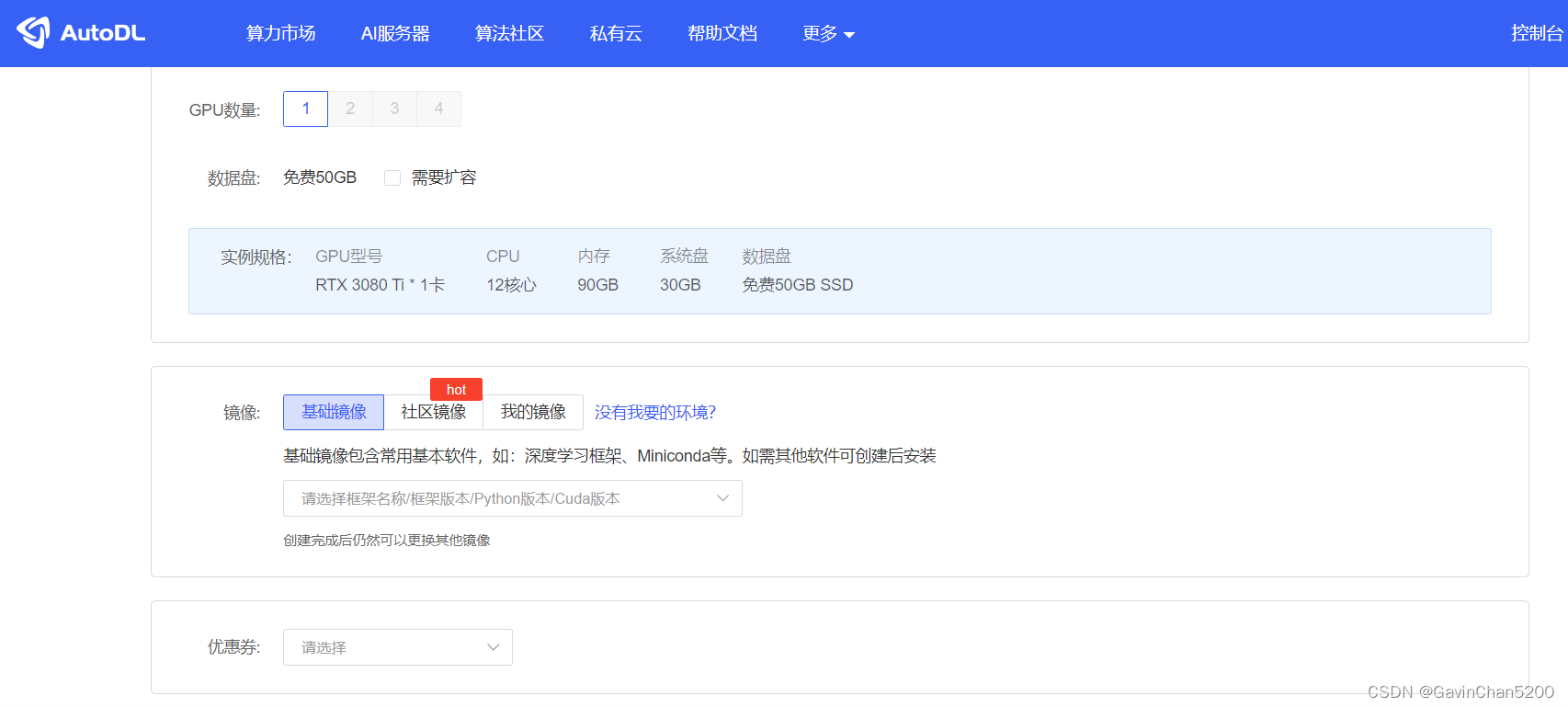 云服务器的租用页面能够选择镜像,包括基础镜像、社区镜像和我的镜像三部分。如果其中正好有你需要的那就太棒了。