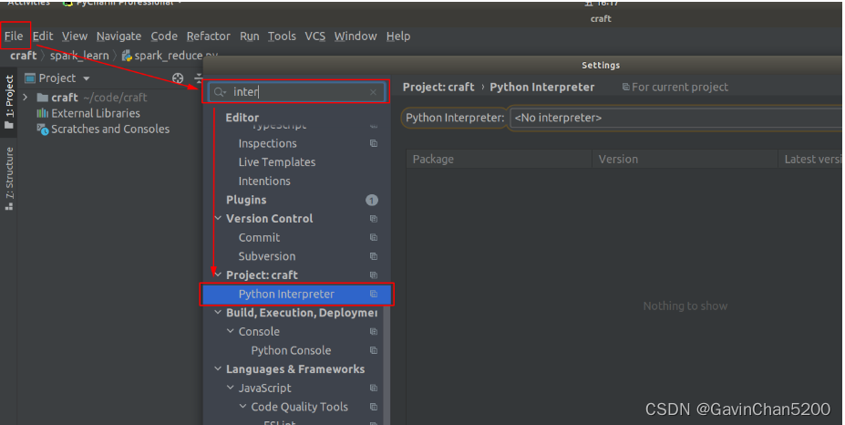 在Pycharm中[File] -> [Settings],打开以下设置弹窗,搜索interpreter找到[Python interpreter]设置项。