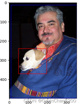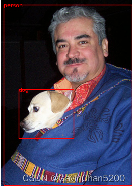图中bound出两个类别:dog和person,并且分别显示边界框。