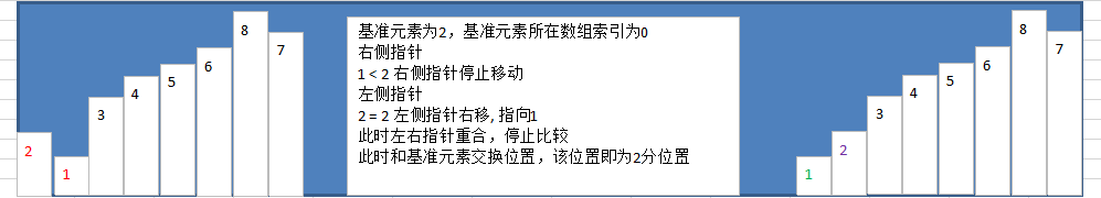 以 2为基准发现就只有1,在2的左边。右边再次递归时, startIdx = 1 + 1 endIdx = 1,1是2这个数字在该数组中的索引位置,startIdx > endIdx 所以右边的递归就退出了;