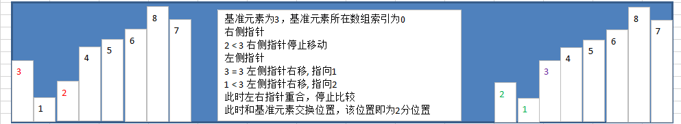 以 3 为基准发现都在3的左边,右边再次递归时,startIdx = 2 + 1 endIdx = 2,2是3这个数字在该数组中的索引位置,startIdx > endIdx 所以右边的递归就退出了