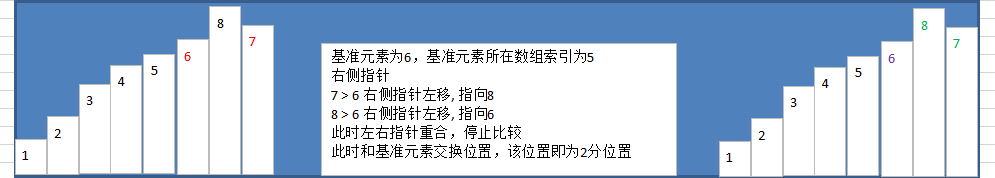 以 6 为基准发现都在6的右边,左边再次递归时,startIdx = 5 endIdx = 5 - 1,5是6这个数字在该数组中的索引位置,startIdx > endIdx 所以左边的递归就退出了;