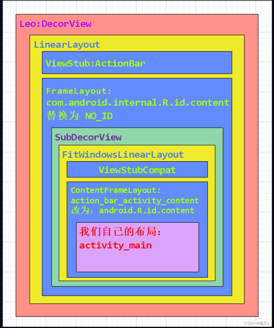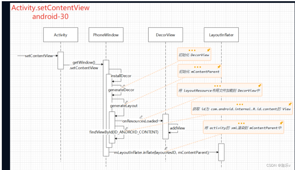 面试: Activity的setContentView 调用PhoneWindow 再调用到decorView里会又一个screen_simple.xml,这个xml有viewStub和fragmentLayout组成,我们的布局就会加载到这个fragment上。AppCompatActivity前面流程基本和Activity一致,唯一的区别就是AppCompatActivity会在fragment上再嵌套一层,然后将原来view一个个删掉,然后添加到新的布局上面,然后就会去解析xml布局,LayoutInflater这里进行加载。