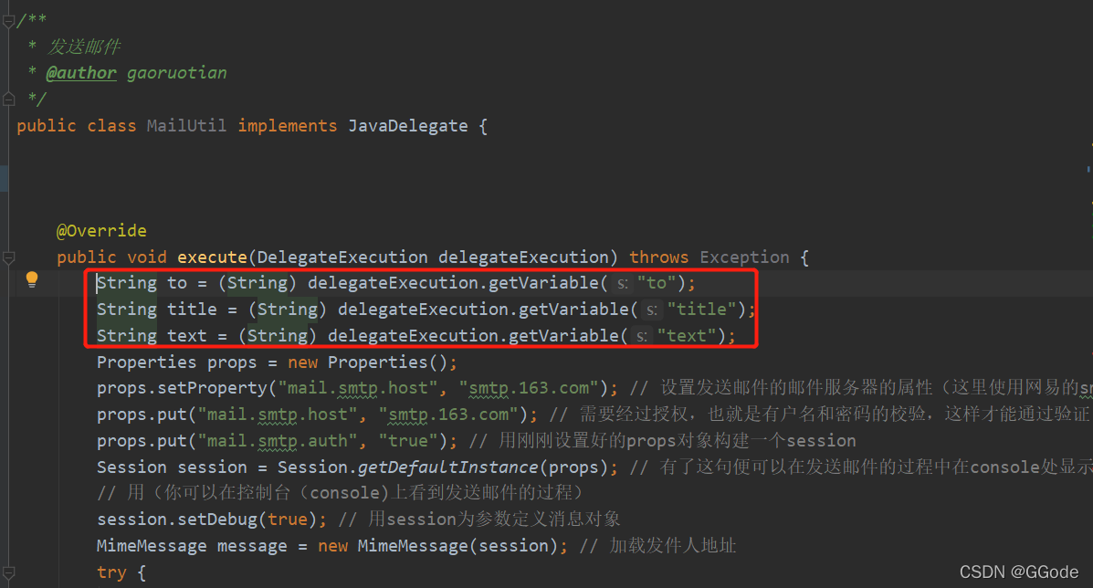注:MailUtil必须实现JavaDelegate