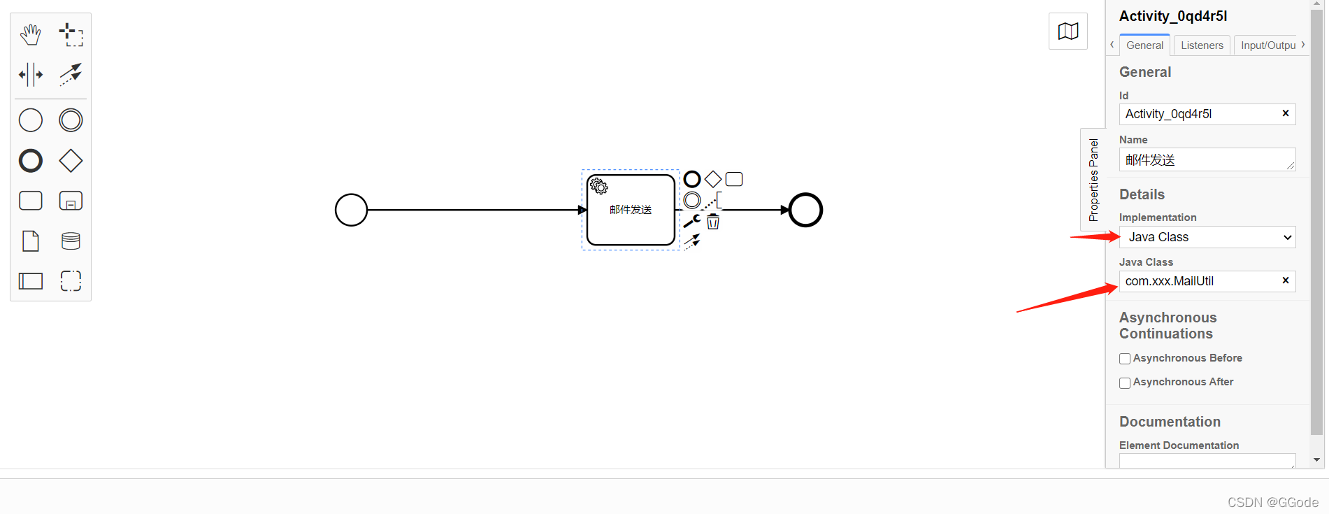<bpmn:serviceTask id="Activity_0qd4r5l" name="邮件发送" camunda:class="com.xxx.MailUtil">