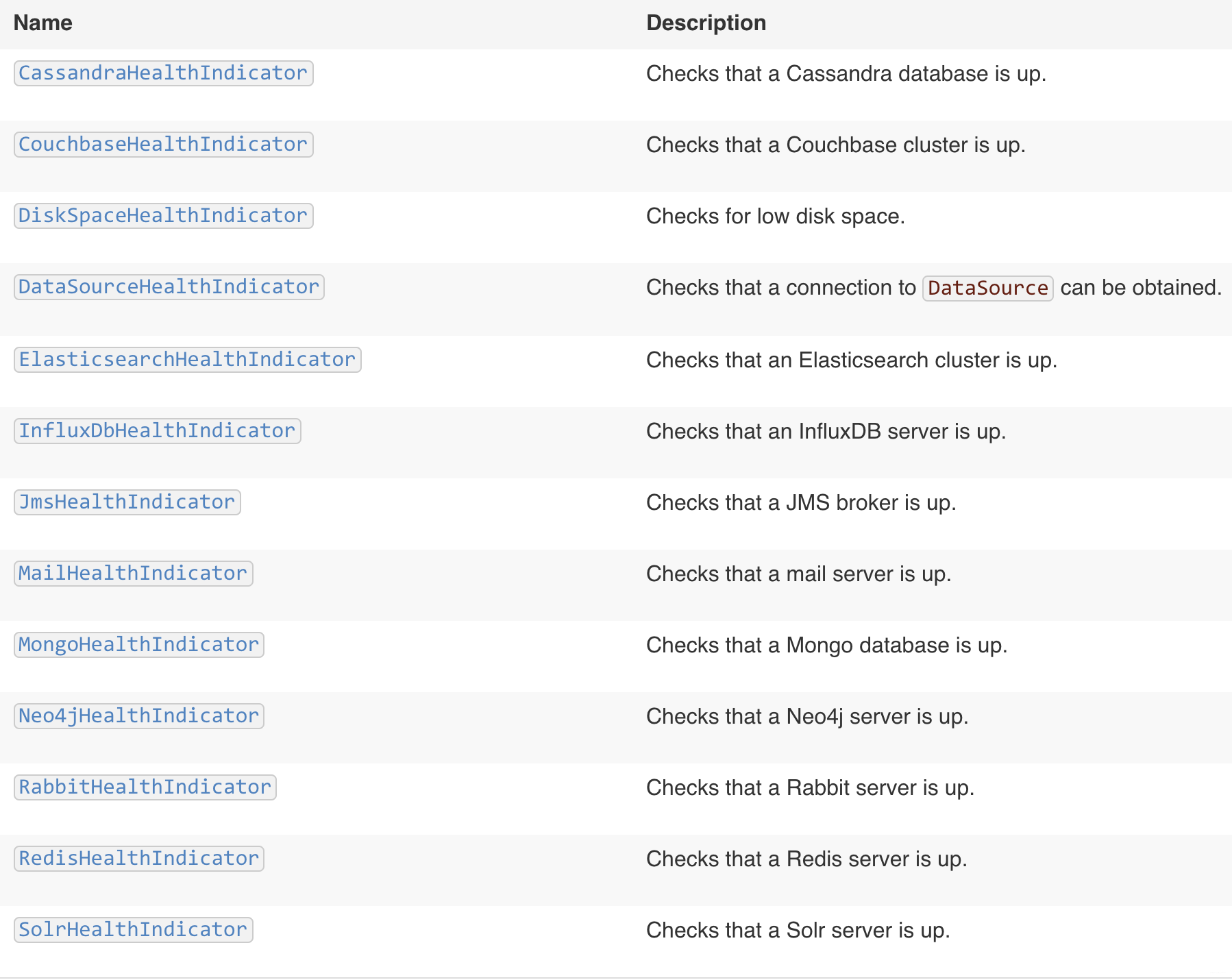 Spring Boot在合适的时候会自动配置以下HealthIndicators: