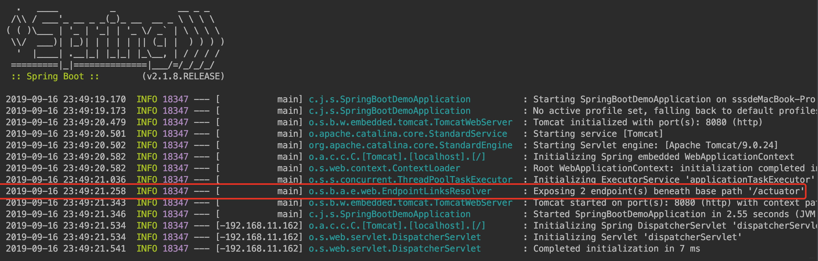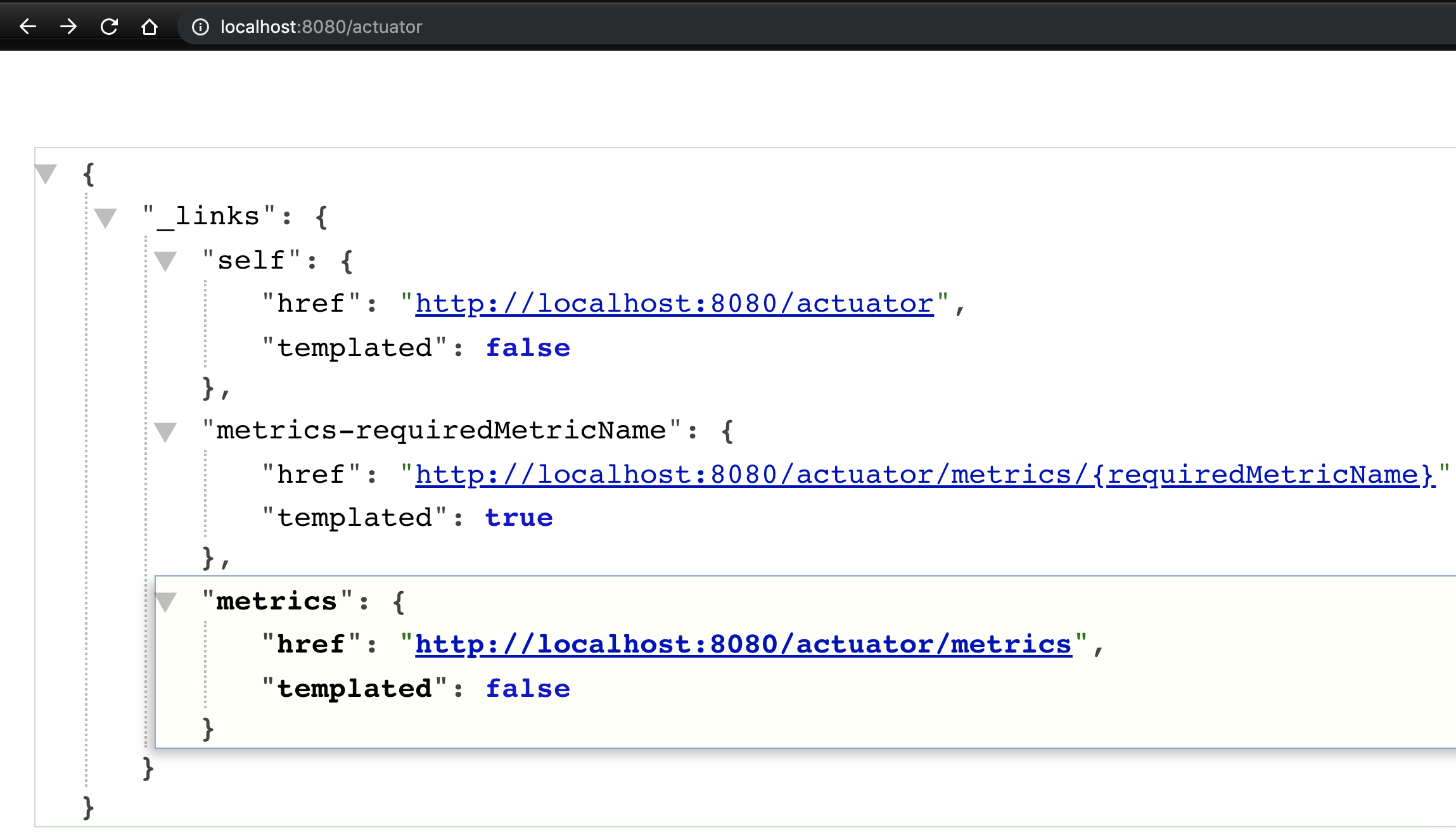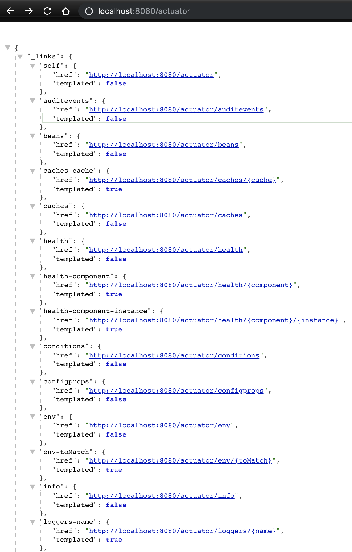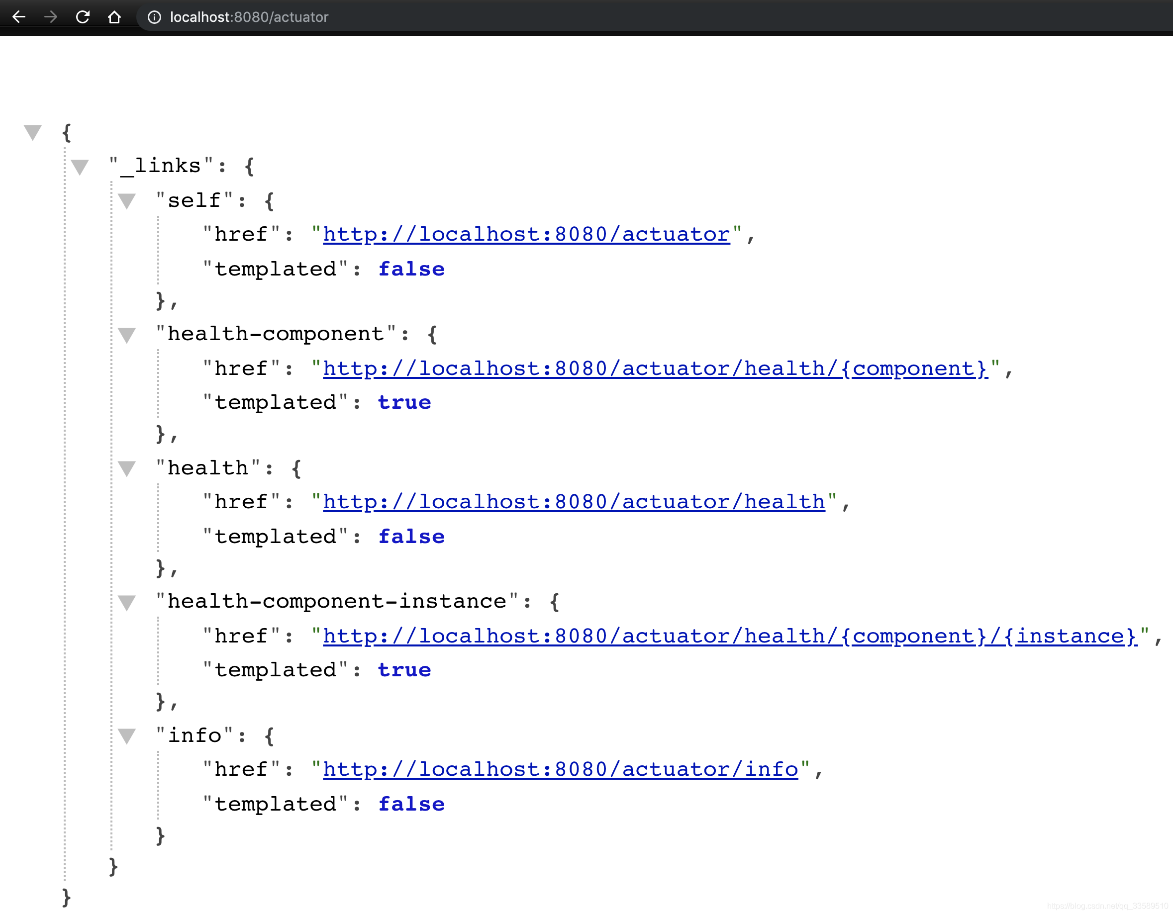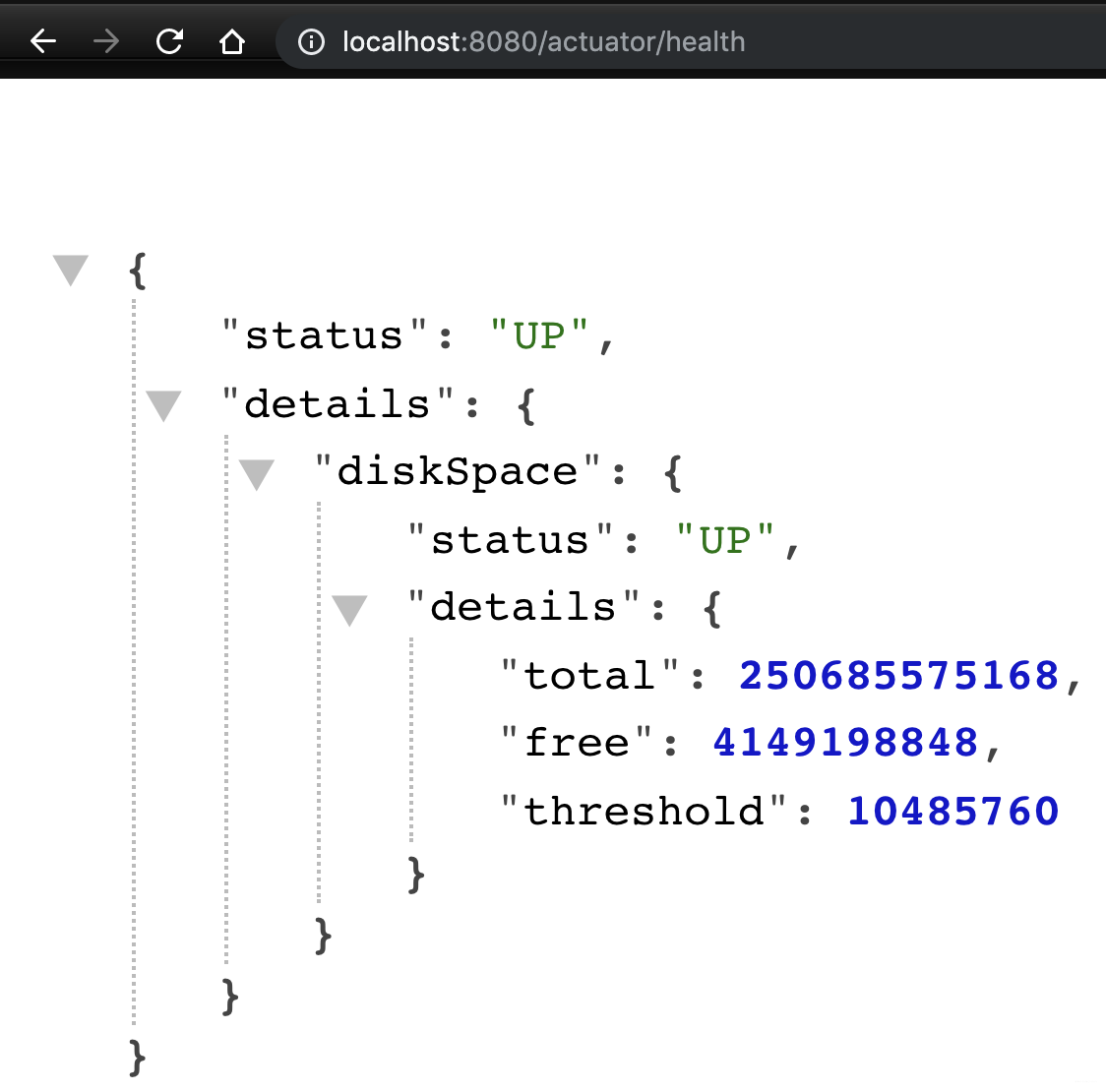 健康信息可以检查应用的运行状态,它经常被监控软件用来提醒人们生产环境是否存在问题。health端点暴露的默认信息取决于端点是如何被访问的。对于一个非安全,未认证的连接只返回一个简单的'status'信息。对于一个安全或认证过的连接其他详细信息也会展示