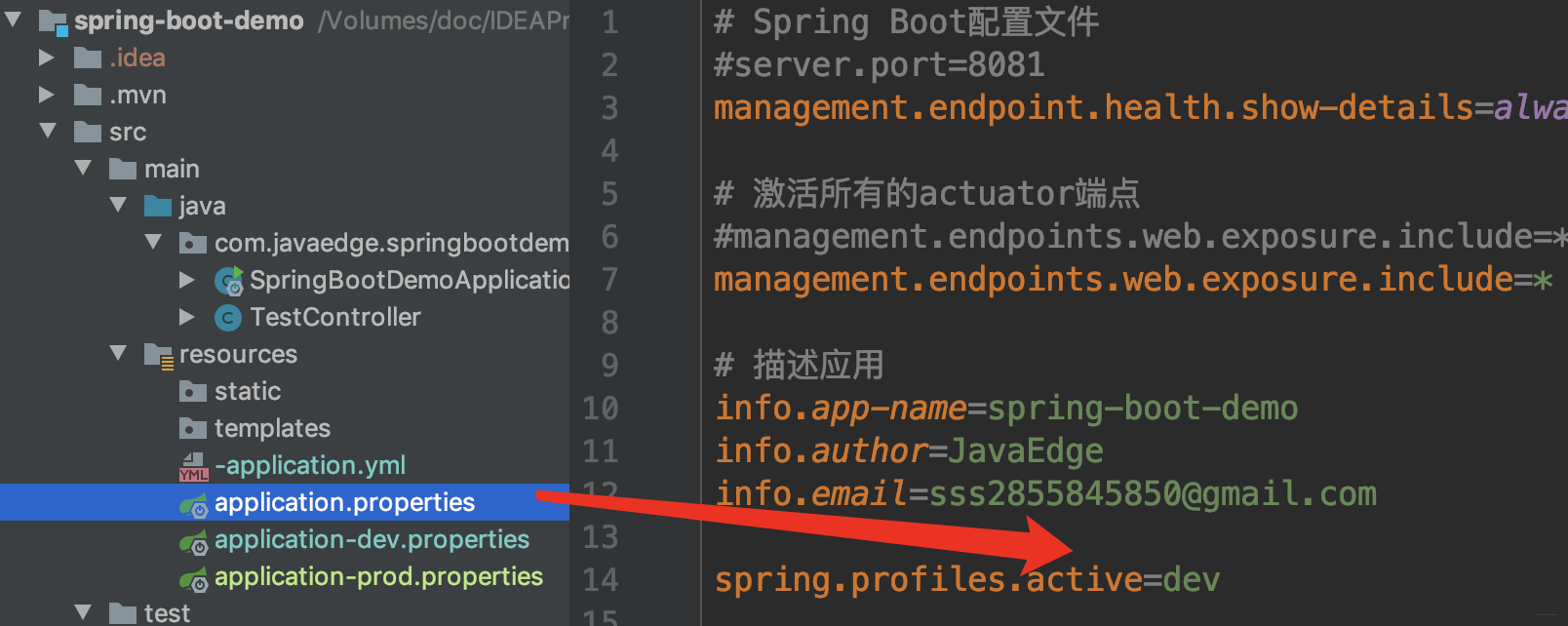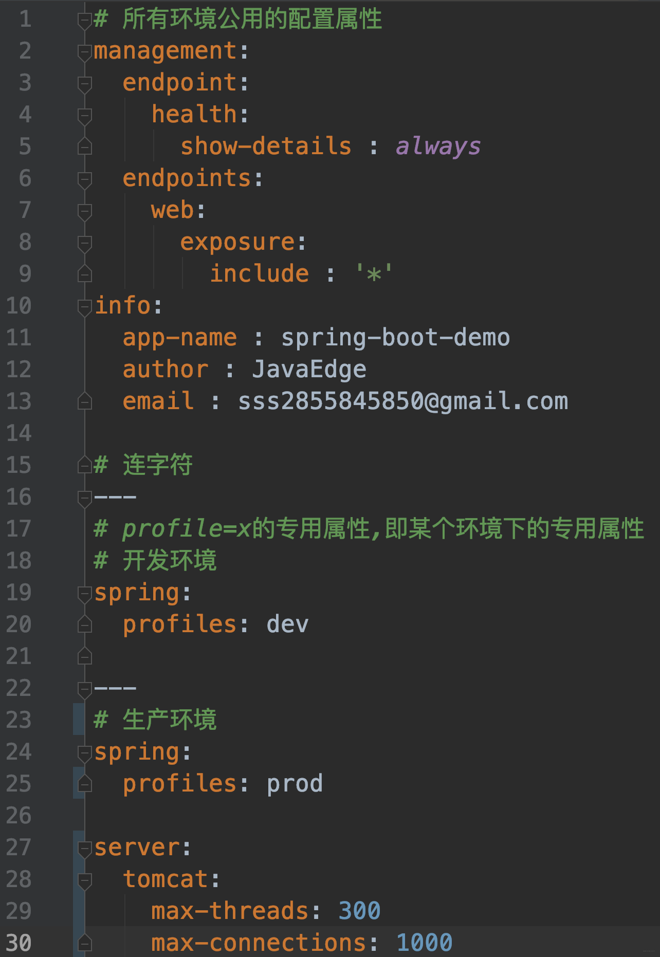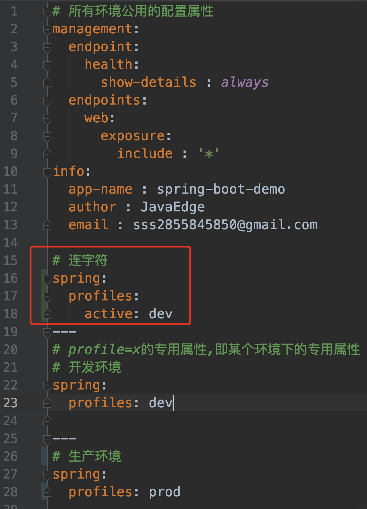 - 默认是default,难道我非要将dev环境改为default才可以使用默认配置?显然SpringBoot另辟蹊径: