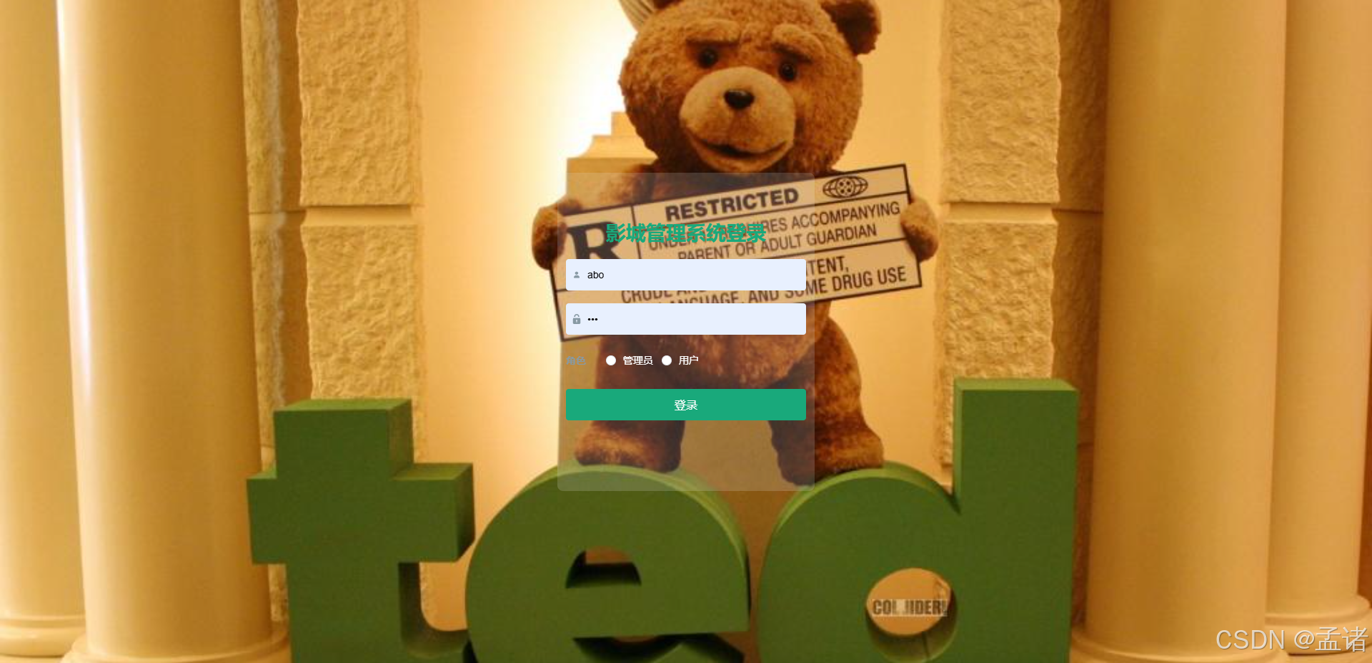 计算机专业毕业设计-电影院管理系统 基于SpringBoot+Vue的电影院管理系统:前端Vue+ElementUI,后端 SpringBoot、SSM框架,系统用户分为两类,管理员、用户。主要功能包括用户管理、电影类型管理、放映厅管理、电影信息管理、 购票统计管理、轮播图管理、资讯管理、在线客服、订单管理、个人中心等功能(毕业设计/课程设计)