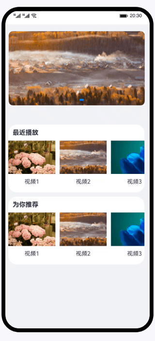 Video组件的使用 在手机、平板或是智慧屏这些终端设备上,媒体功能可以算作是我们最常用的场景之一。无论是实现音频的播放、录制、采集,还是视频的播放、切换、循环,亦或是相机的预览、拍照等功能,媒体组件都是必不可少的。以视频功能为例,在应用开发过程中,我们需要通过ArkUI提供的Video组件为应用增加基础的视频播放功能。借助Video组件,我们可以实现视频的播放功能并控制其播放状态。常见的视频播放场景包括观看网络上的较为流行的短视频,也包括查看我们存储在本地的视频内容。