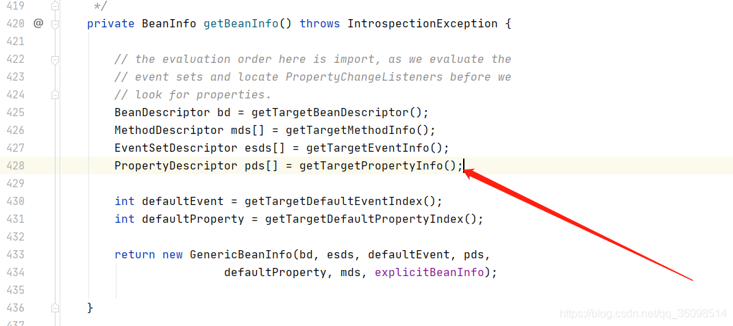 在520行我们看到他会拿set开头的方法,看该方法的返回值是否是void,如果不是的话则不进行处理,所以我们的setter是null