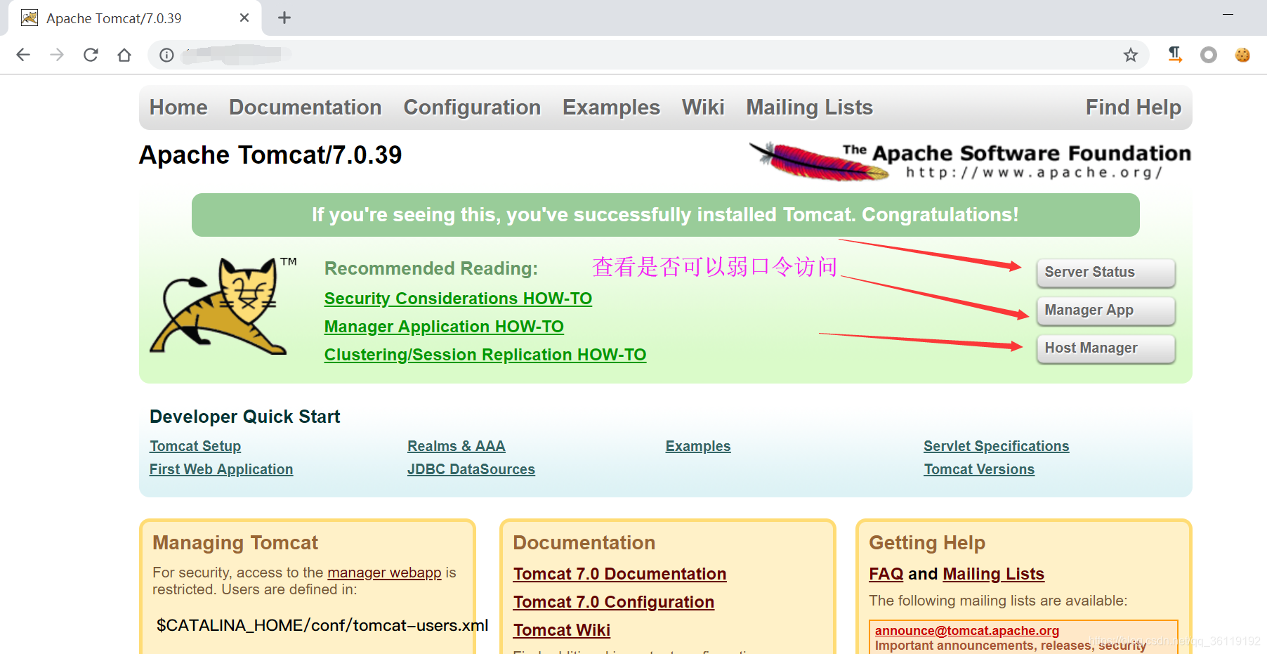 - 对于Tomcat页面,我们可以先试试是否有弱口令,然后再通过扫描目录发现可访问的页面。传送门——> Tomcat管理页面弱口令Getshell