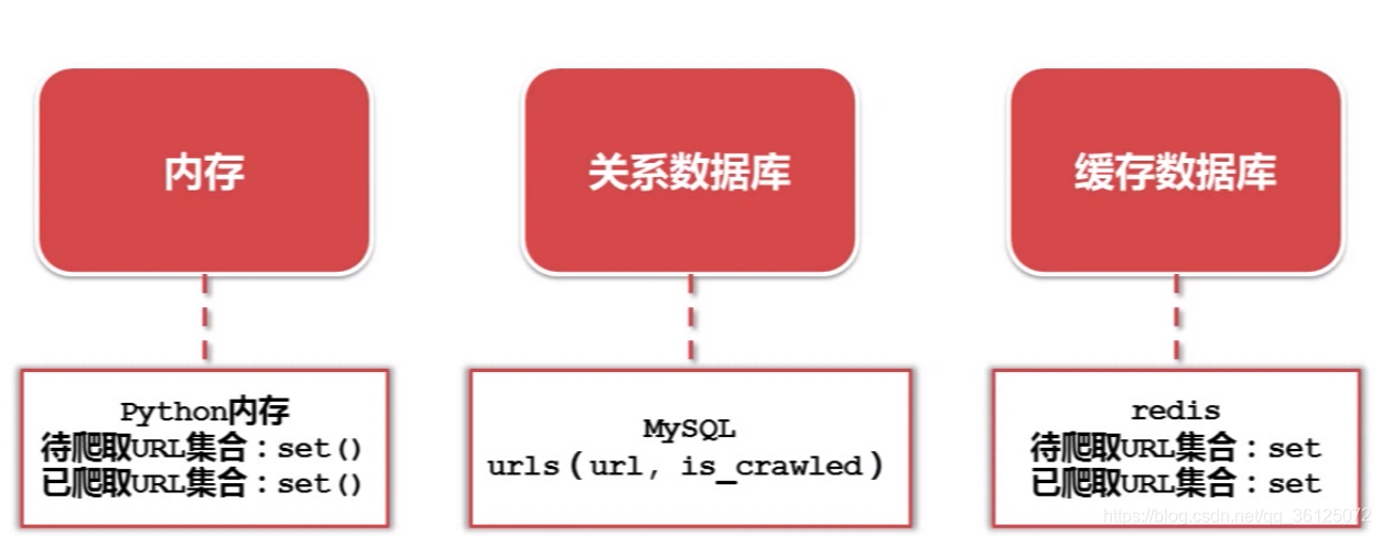 - 在添加新的URL到待爬取集合中之前,判断待添加的URL是否在容器中;