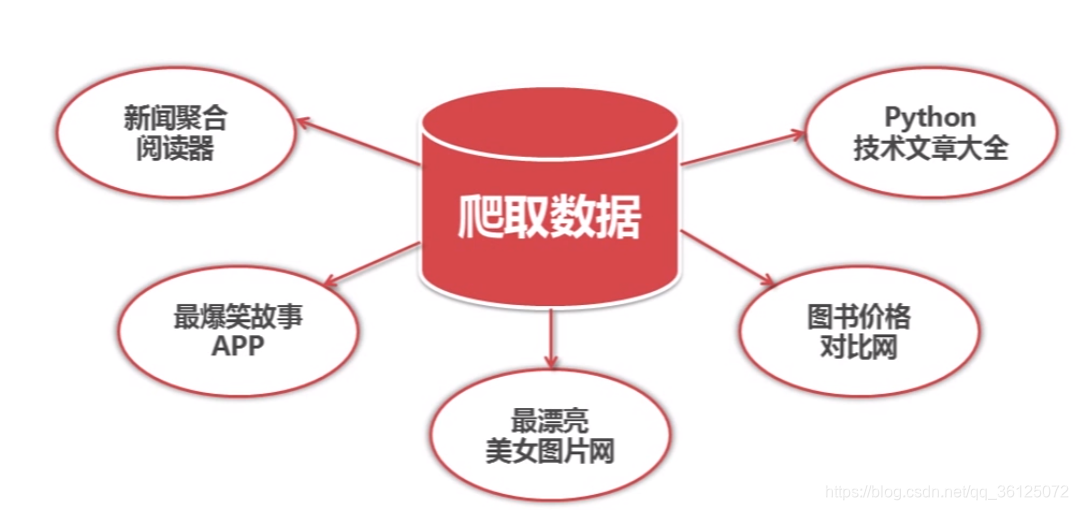如图所示,爬虫就是从互联网中的一个URL出发,访问它所能达到的所有URL,并且获取到需要的价值数据;