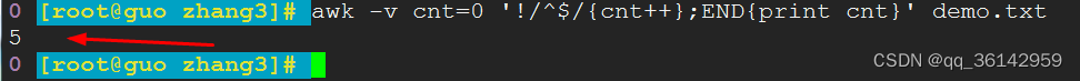 用前面几条命令统计的文件总行数包括空行。如果希望查出不包括空行的行数,借助cat命令和wc命令并不能实现。