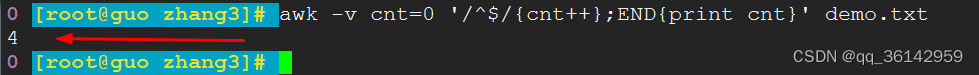 一般用^$表示空行。统计文件行数时,不统计这个行即可。把前面的sed命令和awk命令稍作修改就可以达到空行统计的目的。