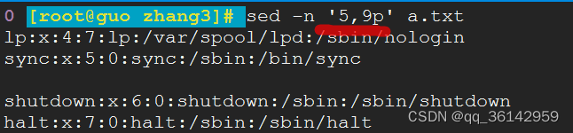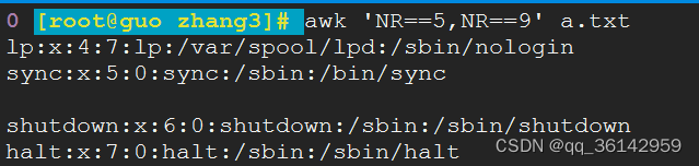 awk命令,NR==5,NR==9表示查看5-9行区间