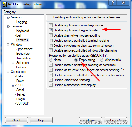 选择 Features=>Disable application keypad mode