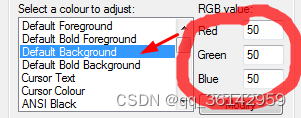 选择Window=>Colours=>Default Foreground设置字体颜色(前景色)