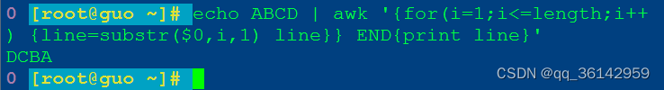 对于字符串,我们可以认为是用''分隔的文本数据,重新设置内置分隔符FS,再反向循环,以字符串格式化输出