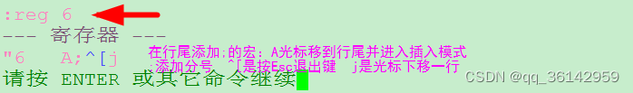 b.使用命令"ap,把寄存器a中的宏命令像文本一样粘贴到这一行,然后编辑这一行(此处以寄存器a为例)