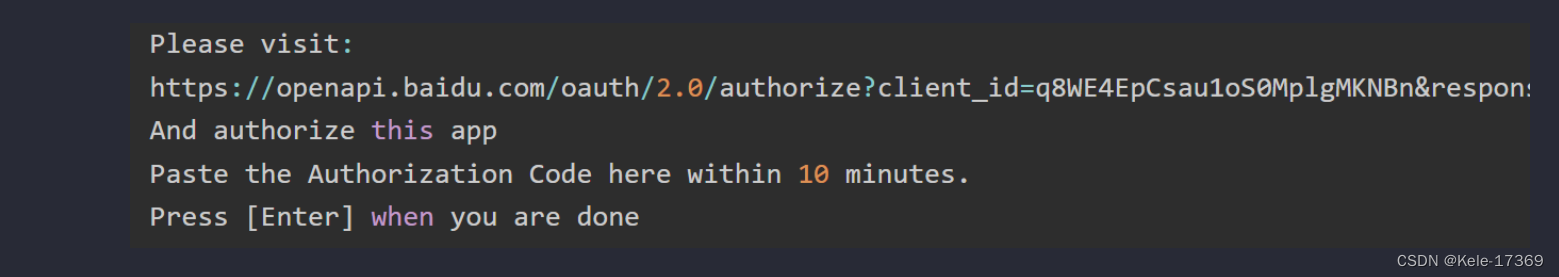 bypy upload filename -v # 上传某文件,显示进度。1.安装bypy: pip install bypy --user。3.得到如下界面,点击连接后得到百度云盘登录信息,得到授权码;bypy -c # 取消令牌文件,一段时间后需要重新授权。bypy downdir filename # 下载。bypy compare # 比较本地目录和网盘目录。4.返回控制台,输入授权码,回车,完成登录;2.配置信息:bypy info。bypy list # 显示文档。