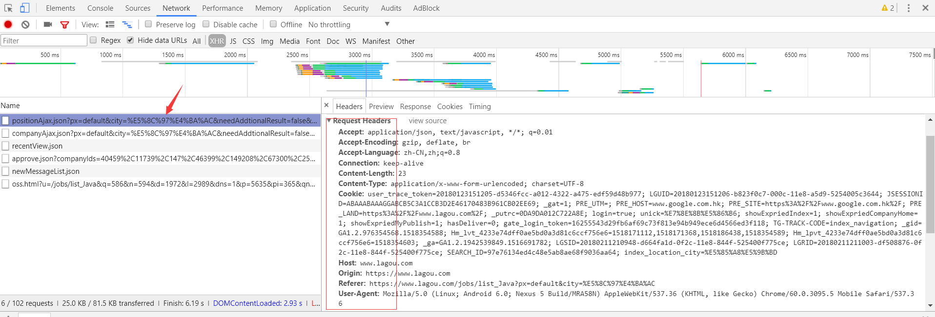 本文介绍了如何使用WebMagic爬虫爬取拉勾网的职位信息。通过分析页面请求,利用Chrome和火狐抓包,理解Ajax请求的原理。详细讲解了设置Cookie、User-Agent、Referer等请求头的重要性,并展示了如何处理Content-Length。最后,通过发送POST请求实现分页爬取,获取1-30页的JSON数据。
