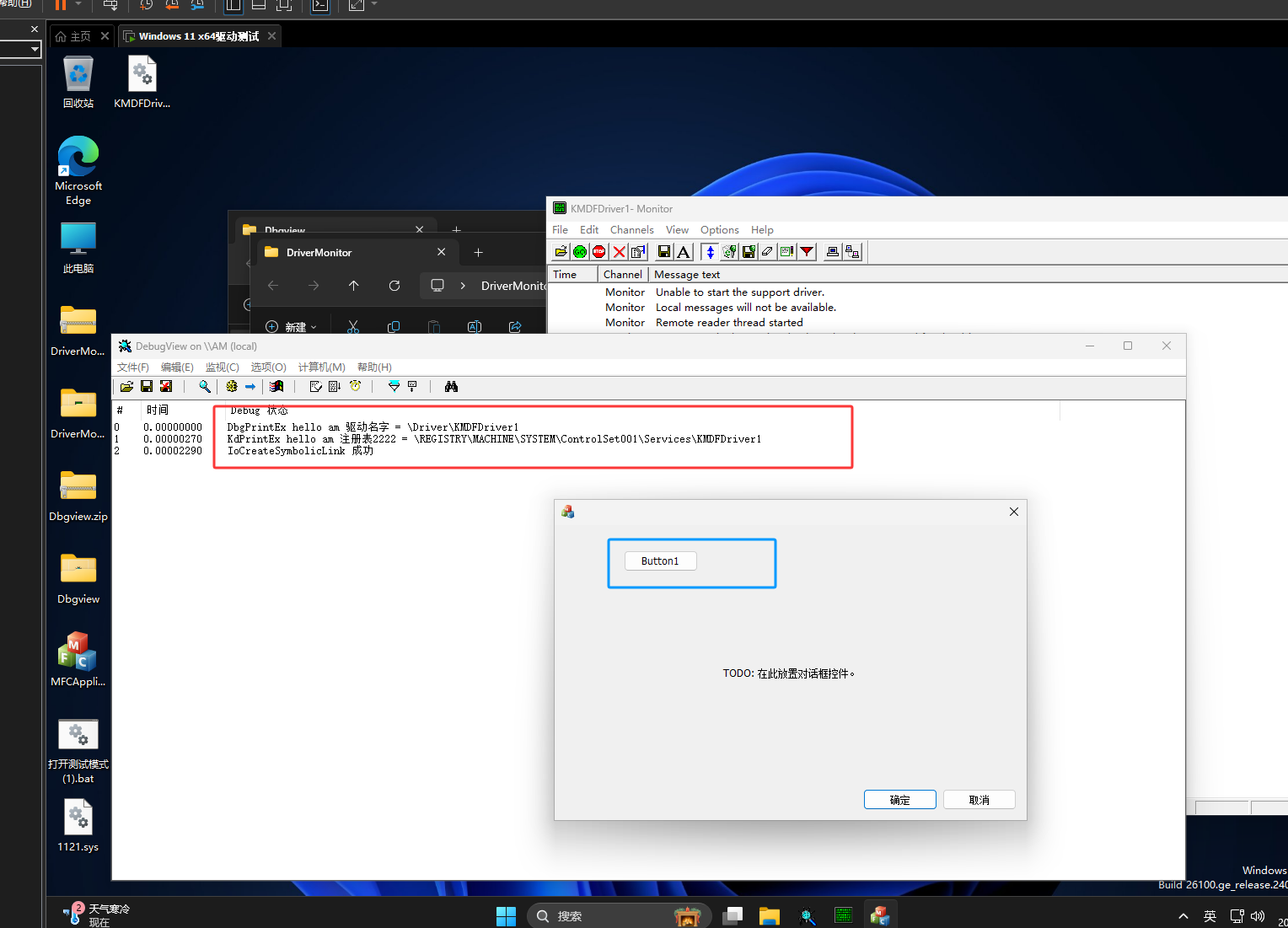 // - 内核驱动成功创建符号链接(IoCreateSymbolicLink 返回 STATUS_SUCCESS)
