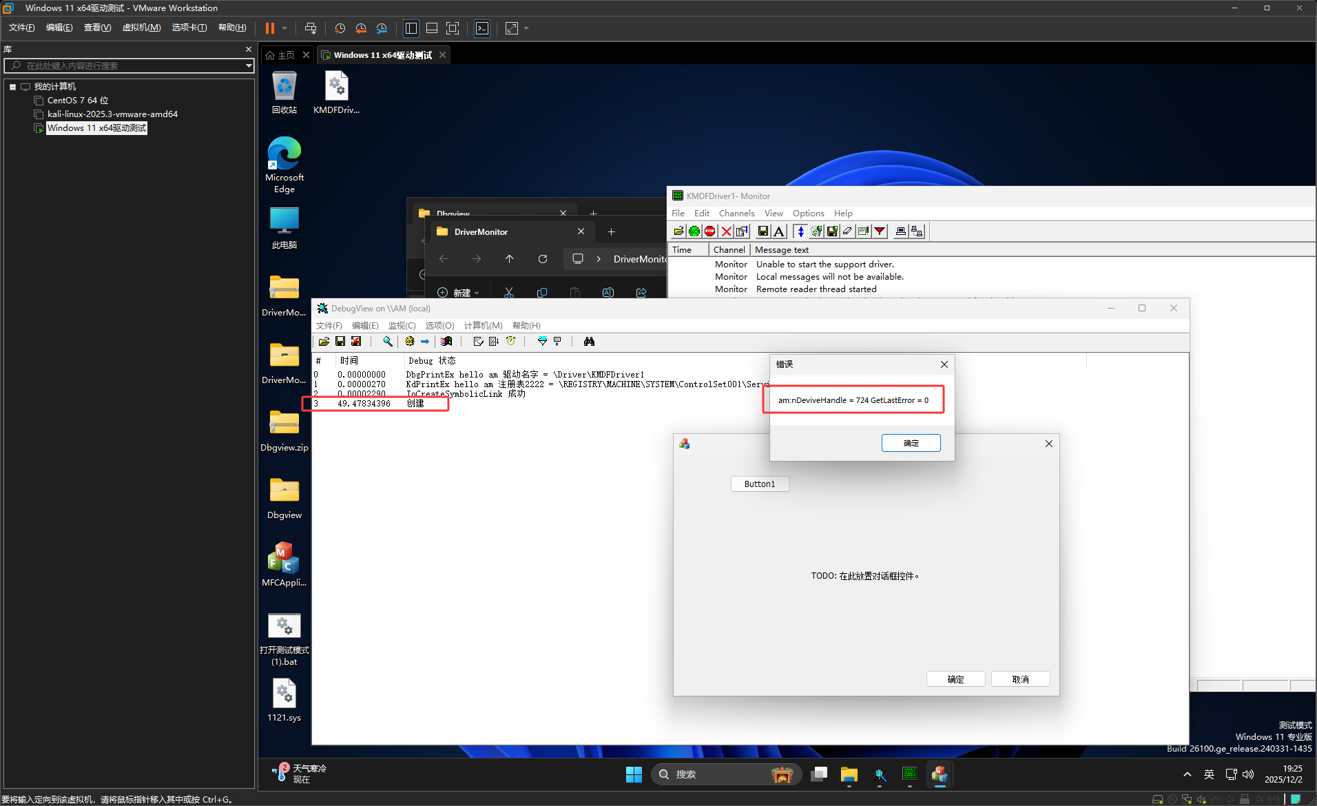 // → 内核驱动中 IoCreateSymbolicLink 调用失败(符号链接未创建)
