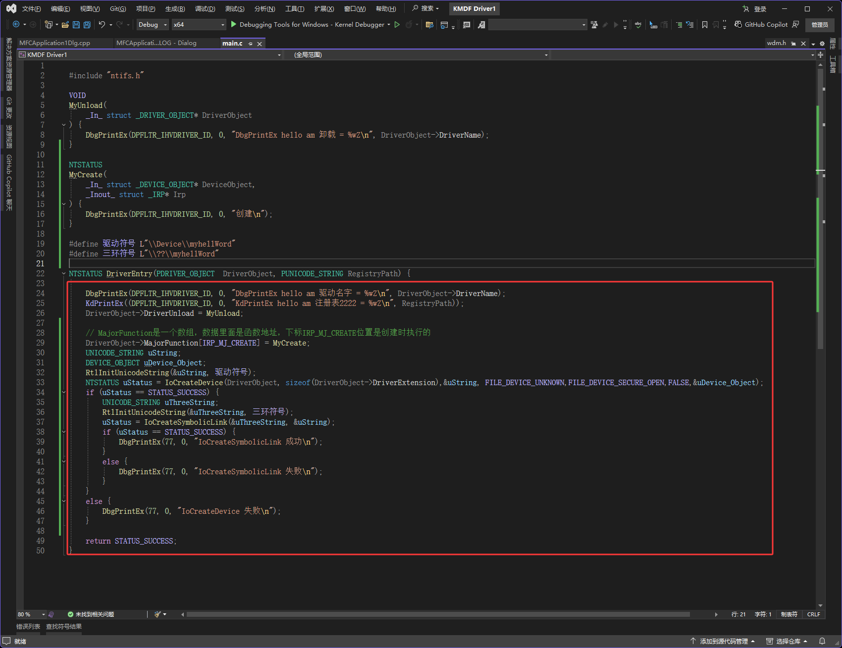 DbgPrintEx(77, 0, "IoCreateDevice 失败\n");