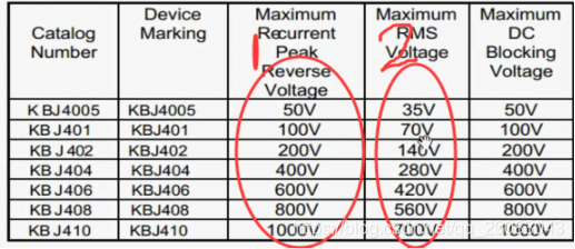 - 上图中,1指的是最大反向电压;2指的是有效电压。