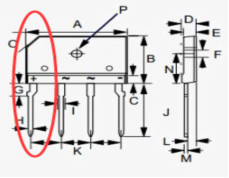 - 有斜角一端的是直流电的正极,中间的两个是交流电的接线端子,交流电没有正负极。