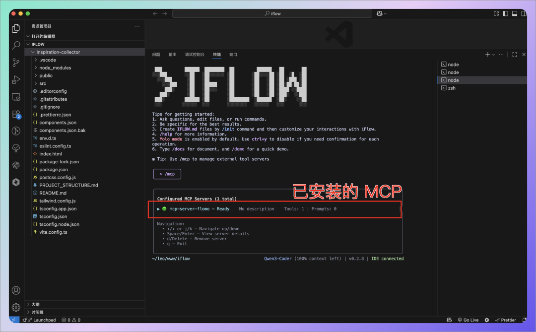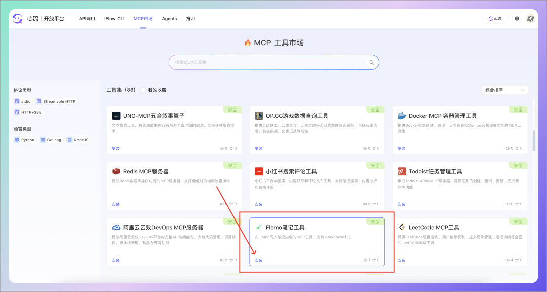 iFlow CLI 通过心流 MCP 市场,快速安装 MCP 到 iFlow CLI 中,并且所有的 MCP 都是经过安全认证,稳定性高。