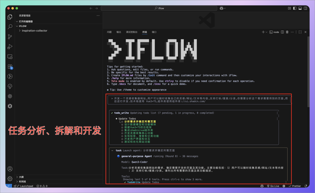 从 iFlow CLI 拆解出来的任务清单,可以看出还是很清晰的: