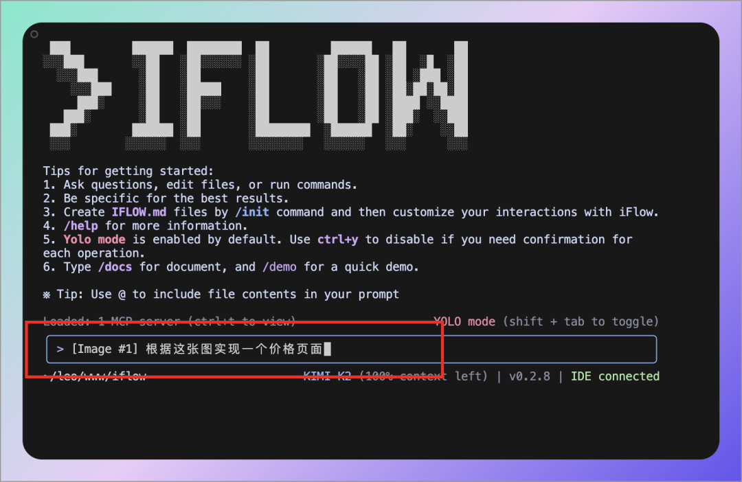iFlow CLI 允许用户通过多种输入形式,包括支持文本、图片、文件引用等多种形式,让任何模型都能"理解"图片内容。