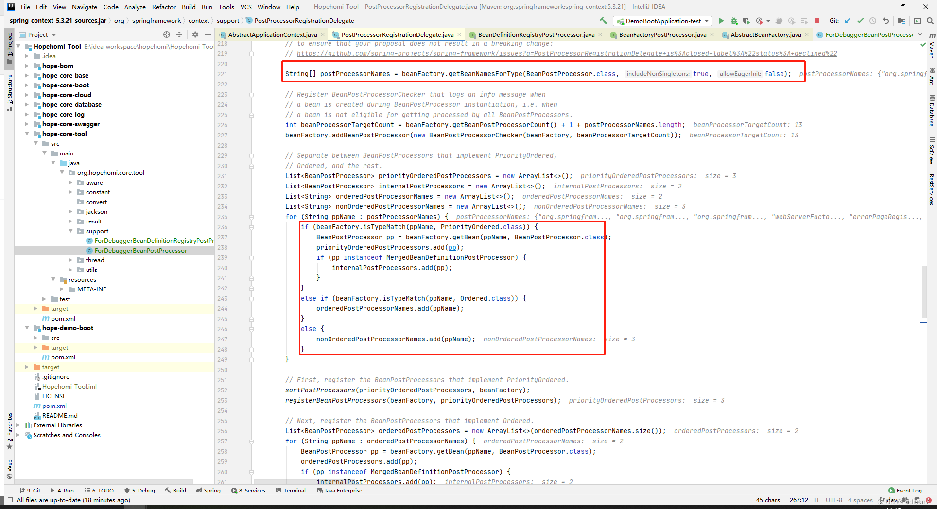 【二】springboot启动源码 - registerBeanPostProcessors 通过上一步方法invokeBeanFactoryPostProcessors的理解,对于registerBeanPostProcessors,依然是通过PriorityOrdered、Ordered等来注册BeanPostProcessor到beanPostProcessors,为了后面根据顺序执行