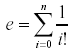 Output the approximations of e generated by the above formula for the values of n from 0 to 9. The beginning of your output should appear similar to that shown below.