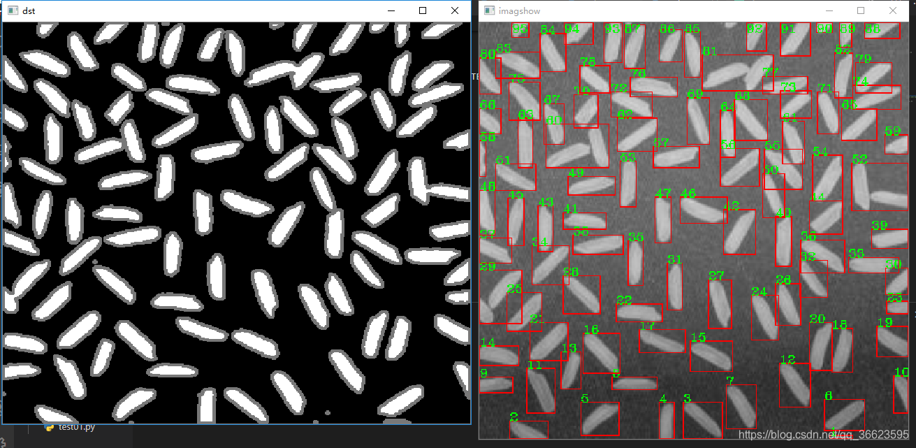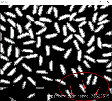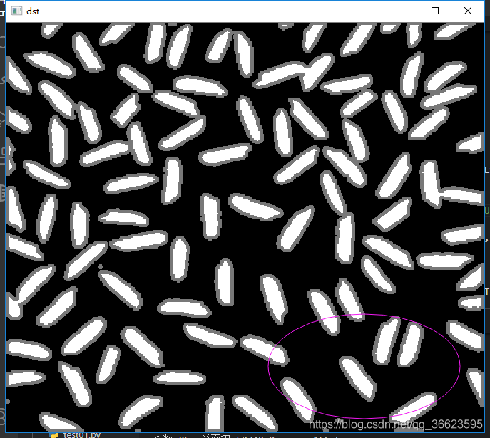 使用OpenCV构建图像识别算法,识别图片中的米粒个数,并计算米粒的平均面积和长度