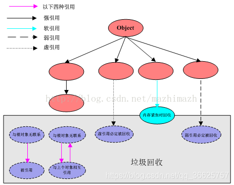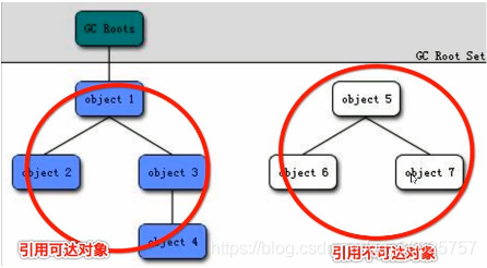 当垃圾回收器回收时,某些对象会被回收,某些不会被回收。垃圾回收器会从根对象Object来标记存活的对象,然后将某些不可达的对象和一些引用的对象进行回收